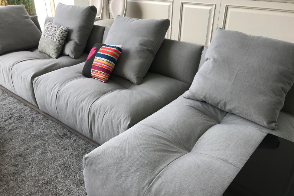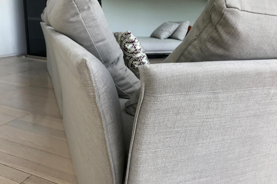 The Pixel sofa, on expo offer in our showroom, is characterized by a clean design and an unmistakable style. Thanks to its soft shapes and to the chosen fabric this sofa suits well in any context.
