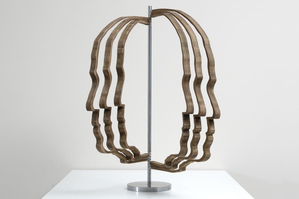 The Work of Art was created in 2013, using stained plywood and metallic structure.