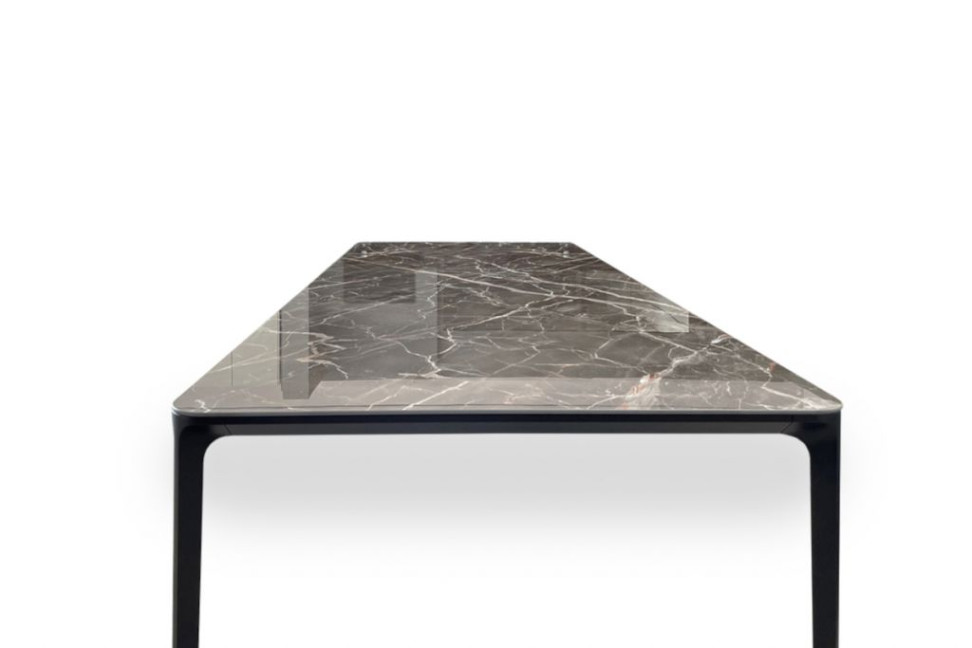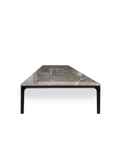 The Slim Rectangular table on Expo Offer in our showroom is characterized by the structure with embossed mocha finish and the top in Ombra di Caravaggio ceramic.