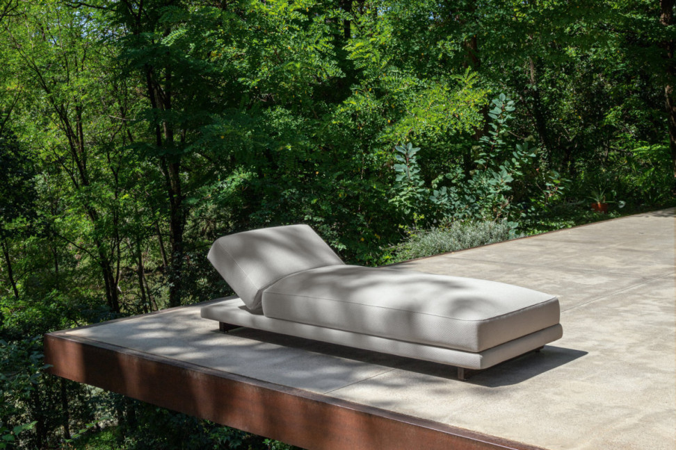 The Argo Wood outdoor sunbed is part of Talenti's Argo collection born from the creativity of the duo Ludovica + Roberto Palomba.