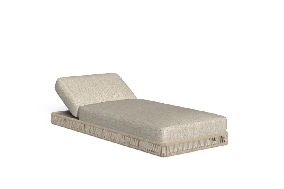 The Cliff outdoor sunbed is part of the collection of the same name by Talenti, an internationally renowned company in the world of outdoor furniture. The Cliff line is born from the combination of different materials and processing that create unique and original furniture complements. Attention to design and aesthetics is evident in every piece of the collection, and in the Cliff sunbed we find it in the meticulousness of the tubular frame covered in woven rope. The cushions, which are fully removable, are made of quick dry foam and upholstered in fabrics from the collection. The Cliff outdoor sunbed is available in three different color combinations.