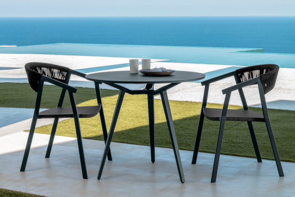 The Milo outdoor table is a distinctive element for outdoor furniture. Whether it is the round table, the extendable rectangular table or the square table, each version features a unique design and high-quality craftsmanship.