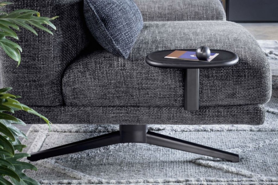 The Tomassini Arredamenti team has selected the Moa sofa, for its different compositions obtainable from the various elements with which to create linear or L-shaped configurations.The Moa sofa, thanks to the particular base consisting of a metal foot, is suspended and slender from the ground. Finally, the Moa sofa can be customized according to your needs by combining the upholstered elements with or without backrest, materials such as wood and marble for the tables and the fabric, leather or eco-leather upholstery.