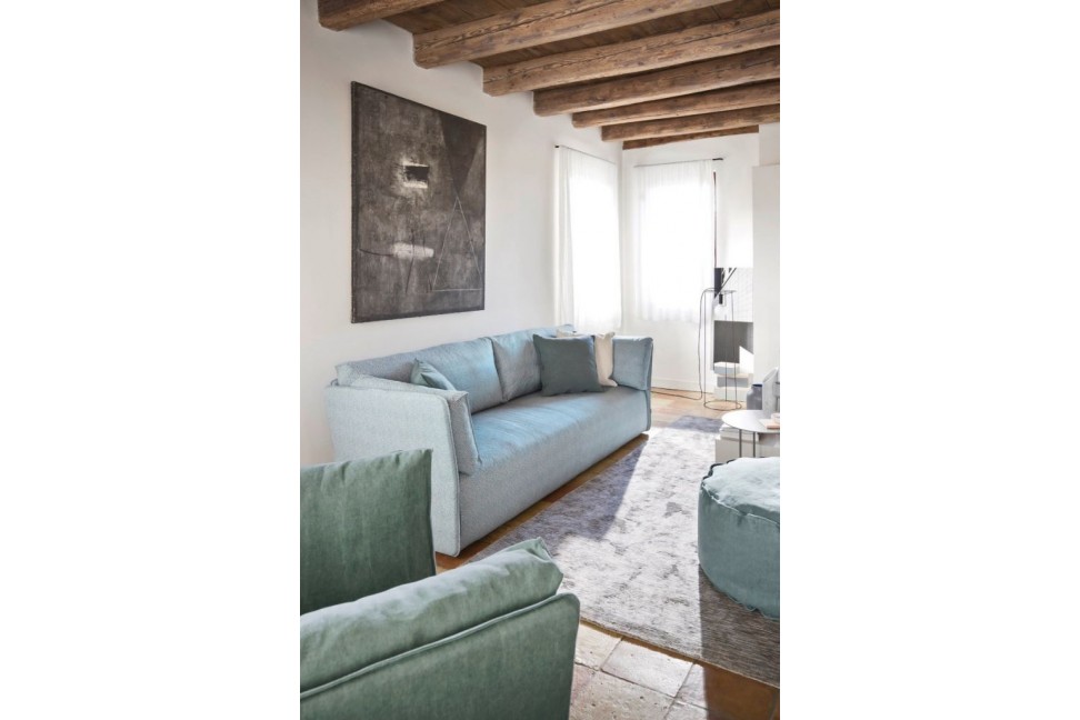 * The indicated price refers to the Musk sofa in the main photo cm.240x90x88h, covered in light blue fabric.