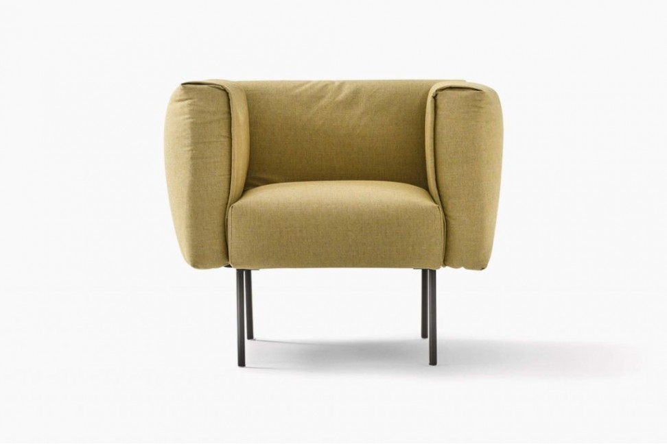 * The indicated price refers to the Noy armchair in the main photo, cm.77.5x72.5x74.5h, with straw yellow fabric upholstery and matt black lacquered feet.