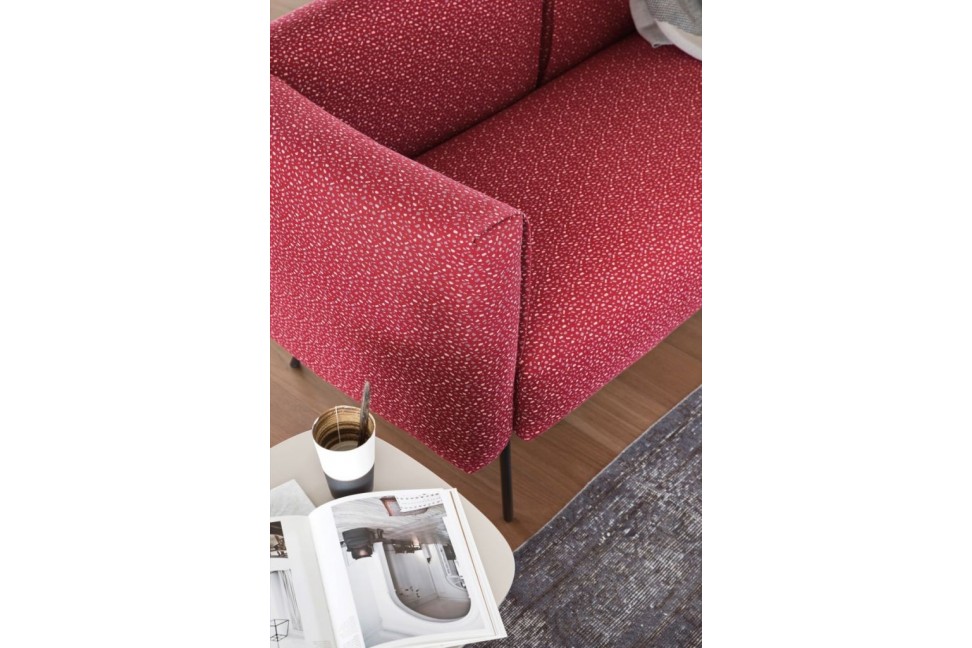 The Noy sofa has a slender appearance and simple lines that are very reminiscent of the 1950s style.The Noy sofa, thanks to the particular base, which supports the cushions, consisting of very thin metal feet inclined at the rear, is extremely dynamic as well as elegant. Eventually, the Noy sofa is available with different covers in fabric or eco-leather, completely removable.