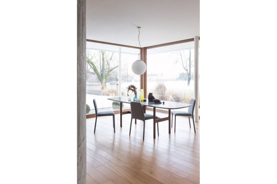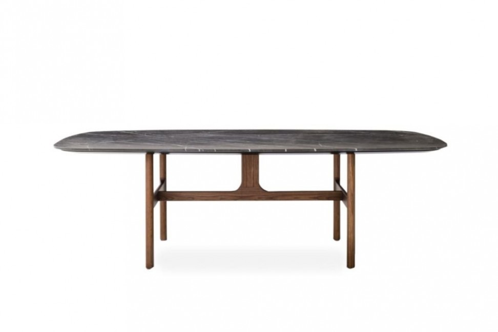 The Story table is reminiscent of the entrance door to Japanese temples.The Story table is available in two sizes and has a structure at the base in light oak or canaletto walnut while the top can be in marble or in the same wood as the base or in all the matt lacquered colors.