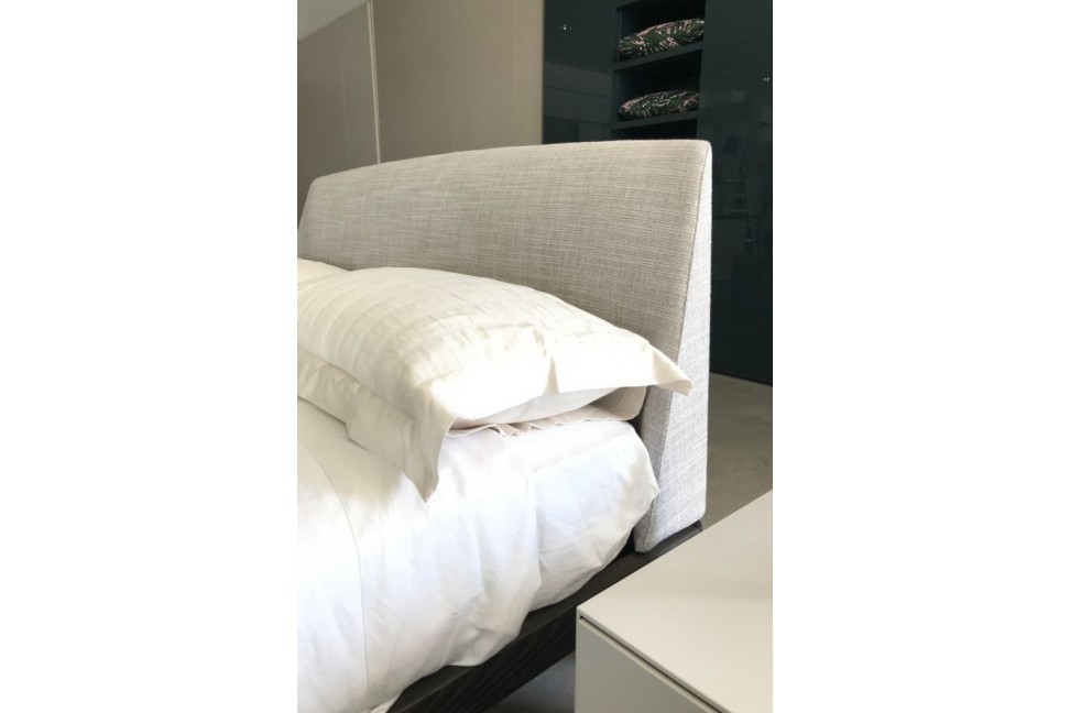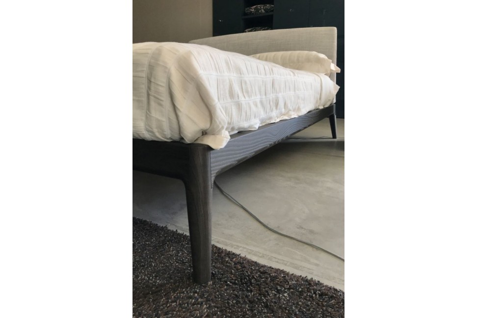 The Teca bed is characterized by an elegant and modern line, the result of all the typical quality of made in Italy design. The exposed wooden structure is accompanied by the padded headboard, which can be covered in both fabric and leather.The Teca bed on Expo offer in our showroom is characterized by a fossil oak structure and a light gray fabric cover.