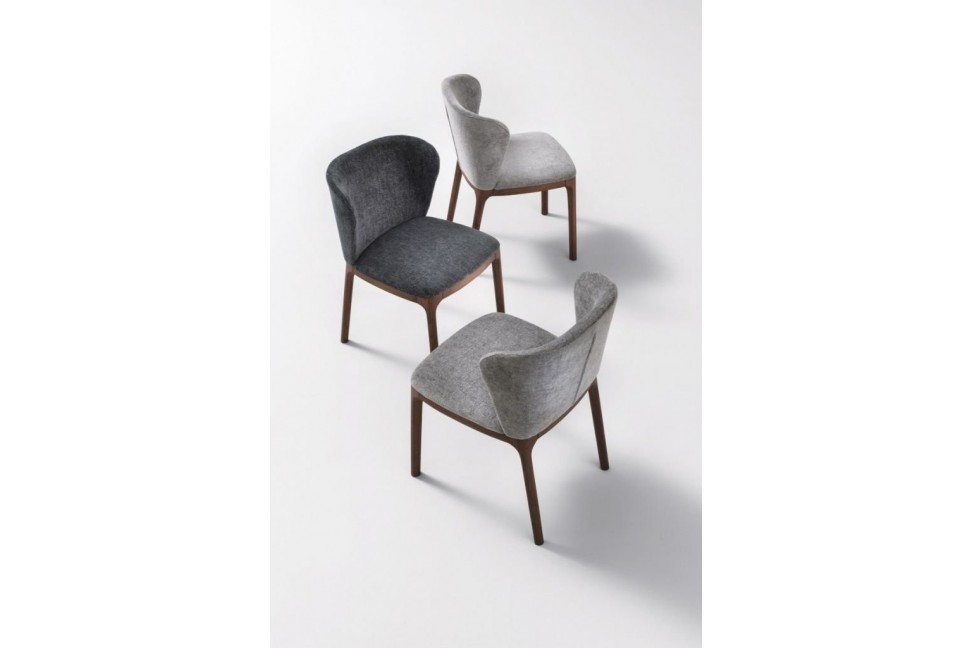 The Vanity chair has the particular processing of the base and legs made in such a way as to bring out all the connections that bind their various components.The Vanity chair is characterized by a wooden structure and seat and backrest upholstered in fabric.