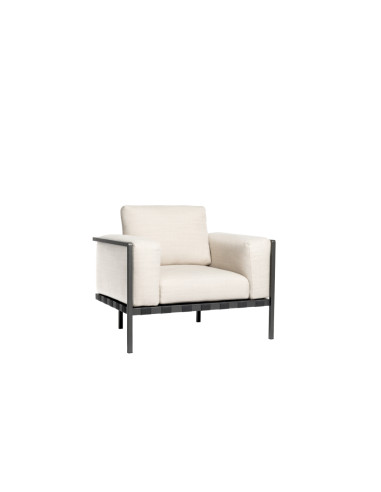 The cozy outdoor armchair Natal Alu, designed by Studio Segers for the well-known brand Tribù, is characterised by a classy design that does not neglect comfort and convenience. The slender structure with curved armrests contrasts harmoniously with the important volume of the cushions, which are supported by a base composed of wide fabric strips. The elegant and versatile Natal Alu outdoor armchair is available with a white or wenge finish and the cushions can be upholstered with fabrics from Tribù's extensive textile selection.
