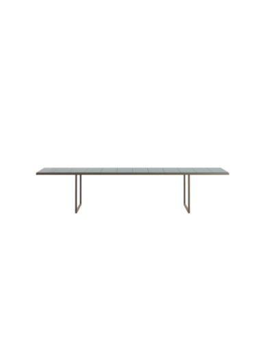 The Nox table is a piece of furniture characterised by the uniqueness of its hand-crafted top. Designed by the best designers of Tribù, a Belgian luxury outdoor furniture brand, this table features a stainless steel base and a top in enamelled lava stone. Thanks to the natural imperfections of the lava stone and the elegant craquelé effect, each table is different; the enamel makes the natural stone resistant to water, heat, frost, UV rays and stains. The Nox table is available in two lengths, i.e. with a top length of 264 centimetres or 352 centimetres.