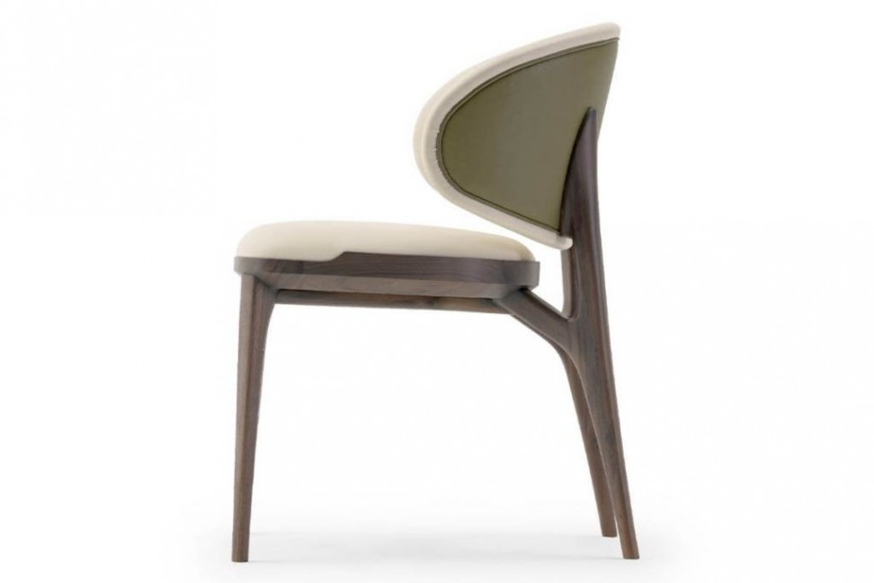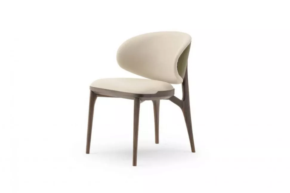 The Pinnacle chair is a 2021 invention by designer Huang Quan for Turri. Its modern style is evident from the wooden supporting structure, with a bold shape, which softens thanks to the more rounded lines of the seat and back. The Pinnacle chair is upholstered in fabric or leather.Turri