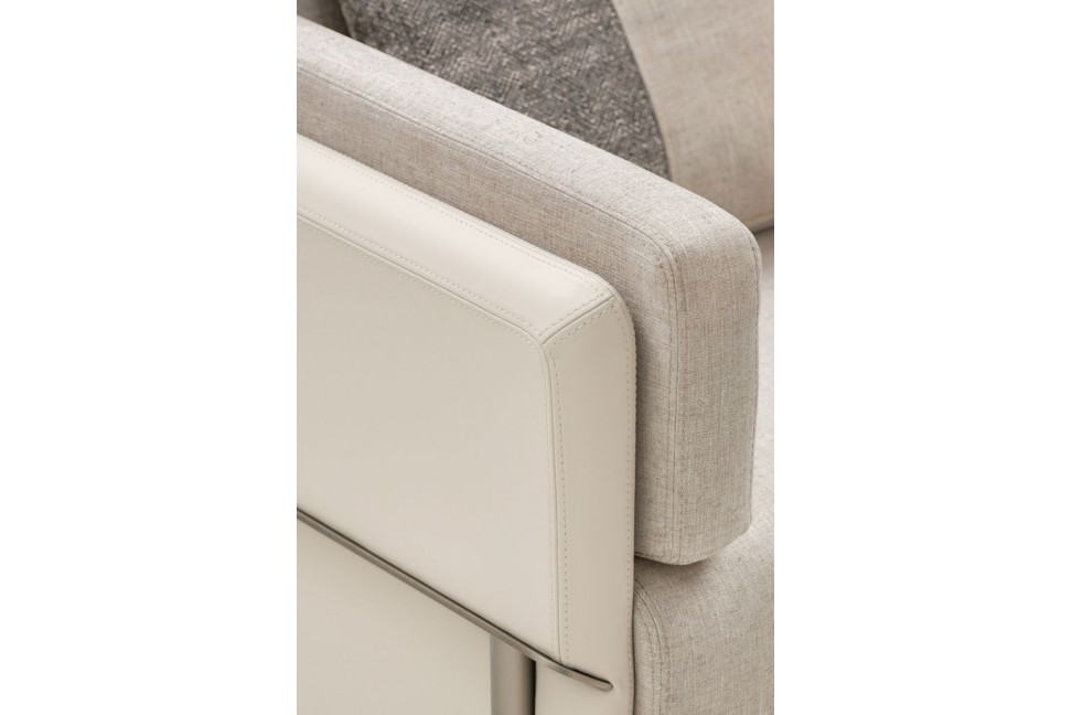 The Zero armchair, from the homonymous collection created by the designer Andrea Bonini for Turri, is characterized by extremely soft seat and back cushions covered in fabric, supported by a satin-finished metal structure in platinum finish. Like the sofa, the outer shell of the Zero armchair is also covered in leather.Turri