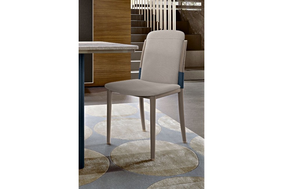 The Zero chair by Turri, from the homonymous collection by designer Andrea Bonini, can be made entirely in leather or entirely in fabric with the detail of the part on the back in leather. The part on the back sets it apart, with a metal detail that takes the shape of a seam on the front. Finally, the metal is found in the final part of the Zero chair legs finished in lacquered wood.Turri