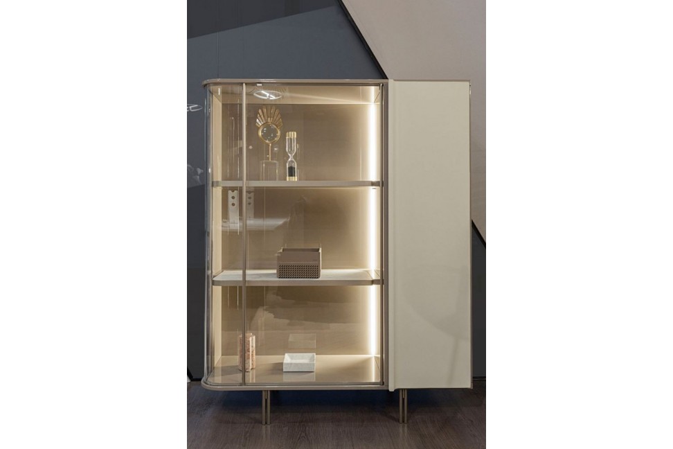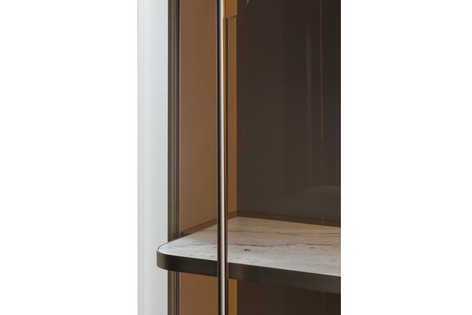 The Zero showcase, designed by Andrea Bonini for Turri, shows off the strength of the homonymous collection: the contrast and the union of top quality materials. From the metal legs to the wood and glass structure, with internal shelves in marble edged in metal. Available in various finishes from the Turri range, Zero is also equipped with a handy internal LED lighting system.Turri