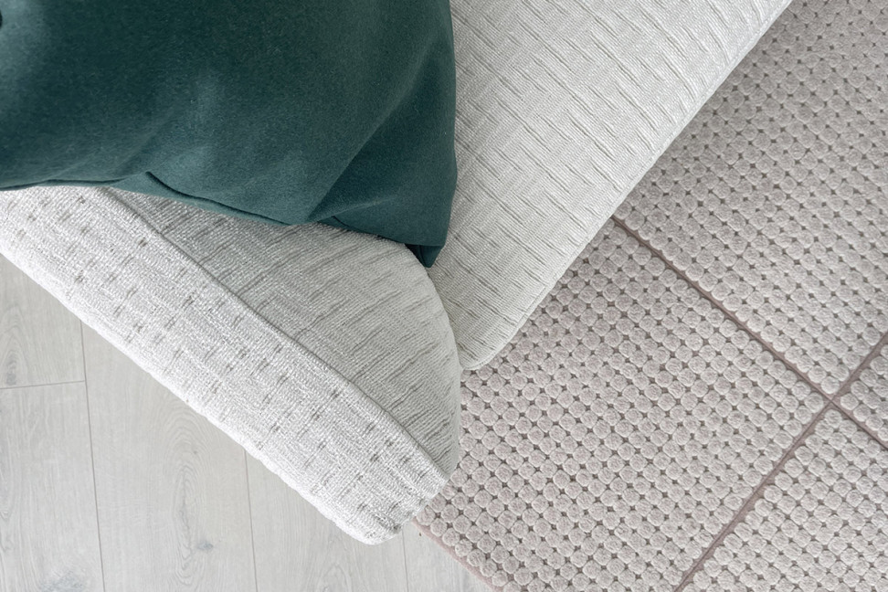 The Alexander sofa on Expo Offer in our showroom is upholstered in off-white fabric.