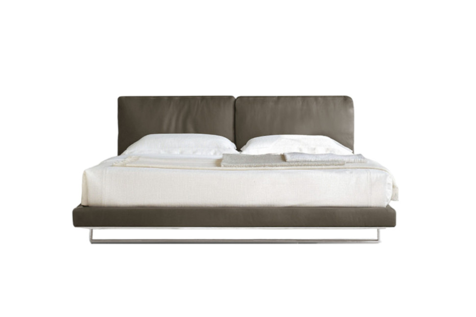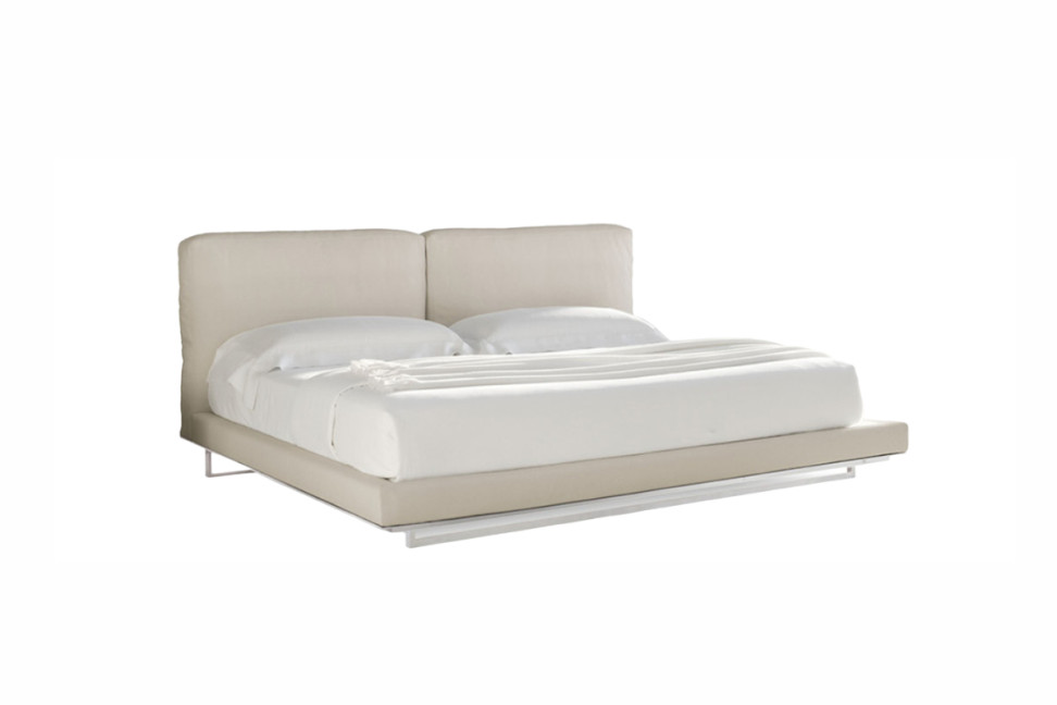 Le lit matrimonial Echo, conçu par Giuseppe Bavuso pour Alivar, est réalisé avec une base en acier chromé ou peint et une tête de lit rembourrée en polyuréthane et plumes d'oie. Echo peut être recouvert de cuir ou de tissu. Le lit se distingue par son apparence accueillante et informelle qui le rend adapté à tout type d'environnement. Echo est un élément de mobilier indispensable qui réussit facilement à attirer l'attention.
