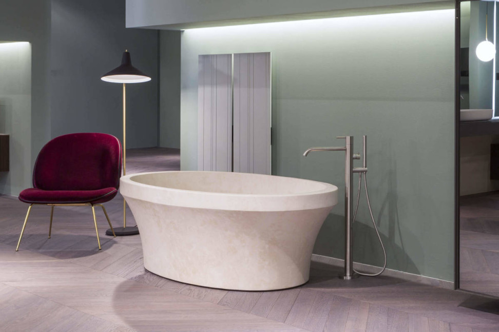 La baignoire Epoque, conçue par Carlo Colombo en collaboration avec Antoniolupi, est une baignoire sculpturale, un monolithe de pierre Amazone creusé par l'eau qui se manifeste à travers des traits simples et essentiels qui donnent naissance à une forme achevée et élégante.