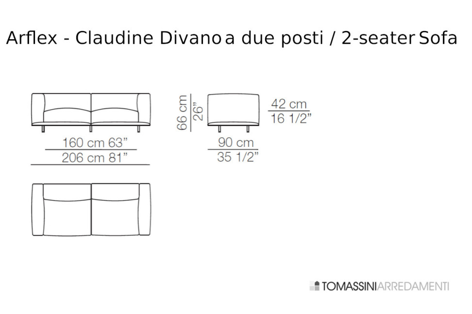 Le canapé modulable Claudine d'Arflex est disponible en plusieurs variantes linéaires et dans de nombreuses compositions. Parmi les dimensions linéaires, nous avons :