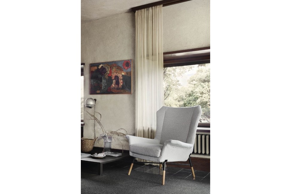Les lignes classiques et le design moderne se conjuguent dans le fauteuil Giulietta, signé par le studio B.B.P.R. en 1958 pour Arflex. Ce fauteuil dispose d'une base en métal laqué noir, enrichie d'inserts en bois de frêne, proposés dans les finitions teintées wengé, chêne et chocolat ; l'assise est accueillante, le dossier est haut et les accoudoirs sont larges. Le fauteuil Giulietta est proposé avec un revêtement dans un large choix de tissus et de cuirs.Arflex