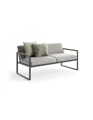 Le canapé d'extérieur Qubik est constitué d'une structure en métal peint avec des détails en teck qui rehaussent son minimalisme formel, tandis que les confortables coussins d'assise et de dossier garantissent le confort, permettant de profiter pleinement de son espace extérieur.