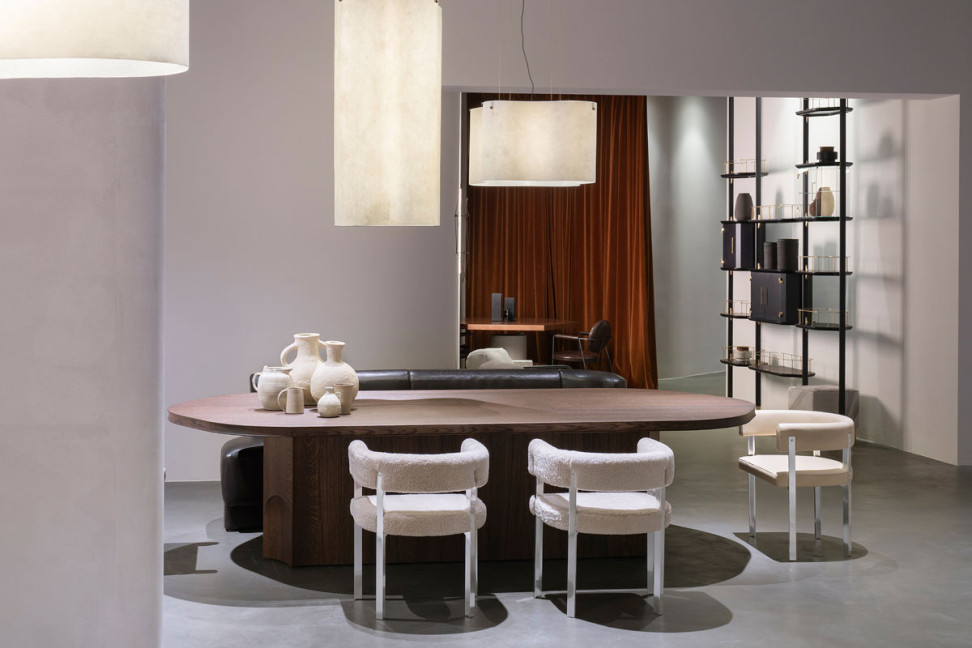 Présenté au Salon du Mobile 2022 de Milano, la table Grace naît de la collaboration entre Christophe Delcourt et Baxter.