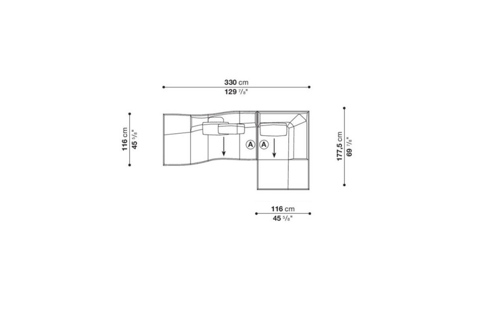 n.1 Chaise longue à droite, cm 111x177,5x65h