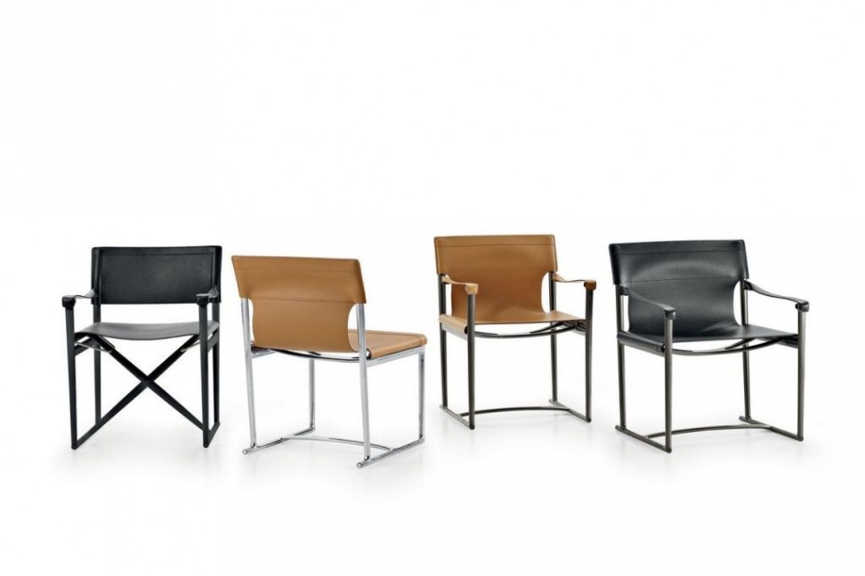 La chaise Mirto produite par B&B Italia est réalisée en différentes versions : avec et sans accoudoirs, pliable ou fauteuil. Toutes les versions se présentent avec une structure en aluminium disponible en plusieurs finitions.