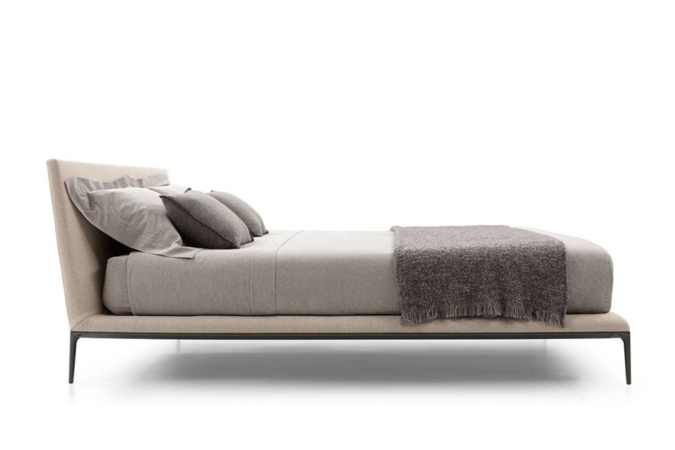 Le lit Atoll de la marque B&B Italia, reprend les caractéristiques de la ligne dont font partie également le canapé et le fauteuil signés par Antonio Citterio.
