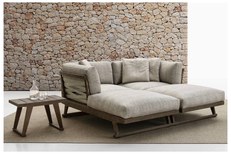 Fruit de la conception géniale du designer Antonio Citterio, le canapé d'extérieur Gio de B&B Italia Outdoor est une expression extraordinaire de design qui fusionne des éléments classiques avec une touche contemporaine. Gio se caractérise par une élégance sophistiquée qui se reflète dans ses structures en teck massif, traitées avec une finition antique grey spéciale. Cette teinte raffinée donne au bois une atmosphère vécue et sophistiquée, enrichie de délicats reflets gris-argent qui confèrent au canapé une patine unique et fascinante. D'un point de vue formel, la série Gio présente différentes variantes de canapés, éléments terminaux et chaises longues, qui peuvent être combinés pour créer des assises linéaires, angulaires ou en îlot, s'adaptant parfaitement aux besoins et à l'espace de l'environnement extérieur. Ces éléments sont soutenus par une base composée de lattes de bois, sur laquelle s'imbriquent les cadres du dossier et des accoudoirs. Ces cadres se distinguent par un raffiné tissage de rubans en polypropylène couleur taupe, qui confère un aspect unique et attrayant au canapé d'extérieur Gio.