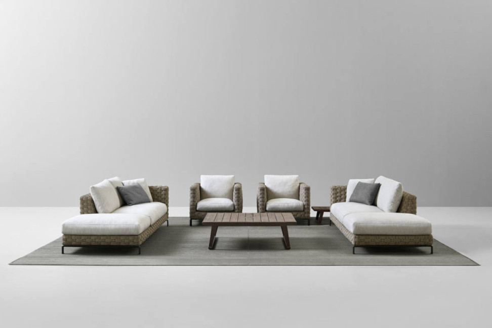 Le canapé d'extérieur Ray Natural, conçu par Antonio Citterio pour B&B Italia Outdoor, apporte la même élégance et la même harmonie que le modèle d'intérieur à l'environnement extérieur. Le designer interprète le thème de l'extérieur avec un langage sophistiqué qui dialogue avec la nature, grâce à un tissage en corde inspiré de l'abaca naturel qui confère chaleur et savoir-faire artisanal à la structure. L'aspect naturel est associé à des matériaux hautement performants, idéaux pour résister aux intempéries sans compromettre le style.