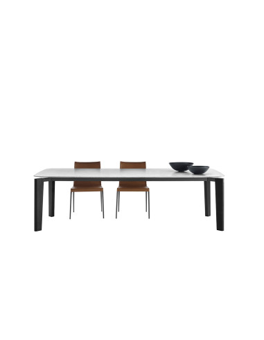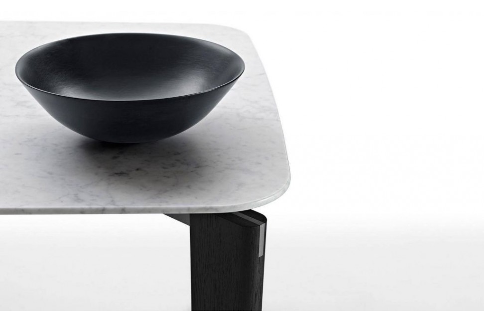 La table Oskar est composée d'une structure en chrome noirci, insérée dans un profil caractéristique de la jambe, qui établit une signature tactile moderne, tandis que le dessus avec ses proportions douces et ses formes courbes semblent suspendus au-dessus. B&B Italia réalise la table Oskar avec des pieds en bois naturel ou laqué, avec un cadre en acier et une variété de plateaux en différentes finitions : en chêne, en verre et en différents types de marbre, offrant une variété de compositions éclectiques. La table Oskar peut être caractérisée par une étude de contrastes ou par un ensemble de composants artisanaux. Le designer Van Duysen, avec ce modèle, réinterprète le design moderniste guidé par des principes industriels, par l'équilibre des proportions, par la combinaison de matériaux audacieux et par une attention aux détails afin de créer une œuvre qui ait à la fois le rigor et l'élégance.