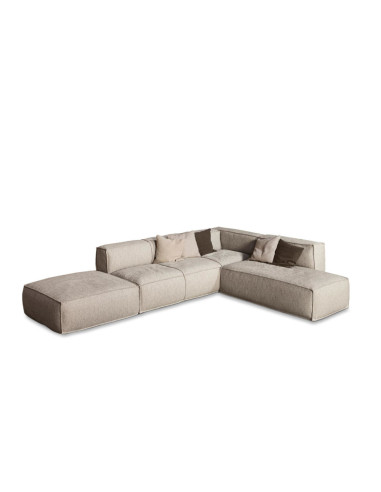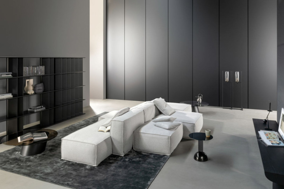 Le canapé Peanut B. de Bonaldo, conçu par Mauro Lipparini, est un canapé avec une forte présence scénique, pensé pour ceux qui souhaitent un salon moins rigide et plus vécu. L'assise est large et accueillante, idéale pour un usage quotidien et pour des moments de détente prolongés. La véritable force du projet réside cependant dans sa modularité: le système offre de nombreux éléments parmi lesquels choisir et permet de construire des configurations sur mesure, des compositions linéaires aux solutions en îlot. Dans cette dernière version, le Peanut B. peut également être placé au centre de la pièce, créant une zone conviviale qui invite à la conversation.