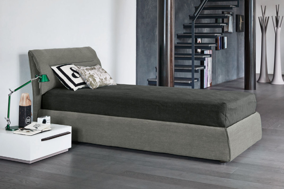 Campo di Bonaldo est un lit double qui se présente avec une tête de lit douce et confortable. Réalisé également dans la version double et avec un espace de rangement.