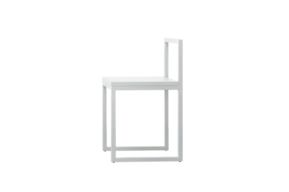 La chaise Fronzoni ’64 est ancrée à une base en tube métallique de section carrée, qui lui confère stabilité et solidité. L'assise, disponible en bois laqué mat blanc ou noir, complète l'esthétique épurée et sans fioritures de cette création.
