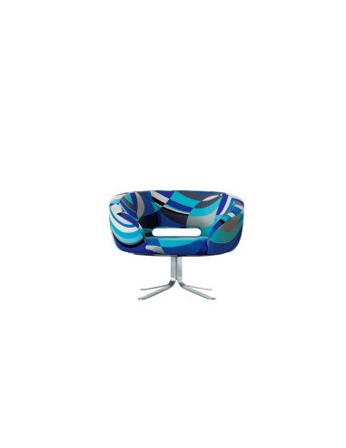 Cette création de design fascinante, le fauteuil Rive Droite, est également disponible en variantes recouvertes des précieux tissus signés Emilio Pucci, la célèbre maison de mode florentine reconnue dans le monde entier pour sa large gamme de couleurs.