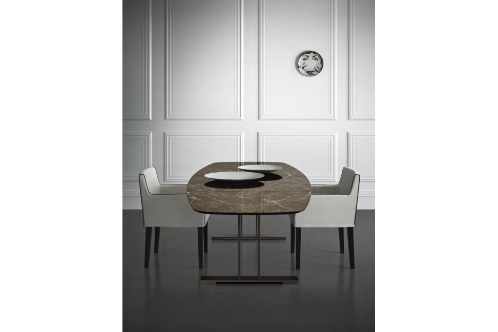 Santiago di Casamilano est une table qui se distingue par son design fin et léger. Il s'agit d'un élément solide et résistant réalisé avec un plateau en marbre disponible en différentes finitions et une base en acier satiné bronzé. Elle est produite en trois dimensions différentes, dont une en forme ovale.Casamilano