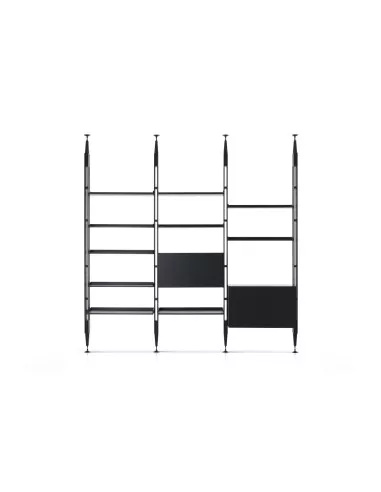Technologie: La fixation par pression entre le sol et le plafond permet de positionner la bibliothèque même au centre de la pièce. La structure est accessible des deux côtés et permet le montage libre d'étagères et de contenants.