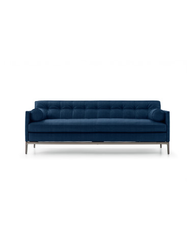 Le canapé Volage EX-S de Cassina se présente avec une esthétique classique caractérisée par un capitonné sans bouton central et par des lignes simples et régulières. L'assise avec coussin unique, soutenue par des traverses en profilé d'aluminium extrudé dans diverses finitions, offre un rembourrage extrêmement doux pour garantir une sensation de confort absolu. L'attention aux détails se voit particulièrement dans les coutures visibles sur le périmètre des coussins et dans le travail du cuir des tables intégrées. Grâce à un large choix de canapés linéaires et de modules modulables, le canapé Volage EX-S s'adapte à tous les types de décoration. Le revêtement est disponible dans une sélection de cuirs et de tissus de la collection Cassina.