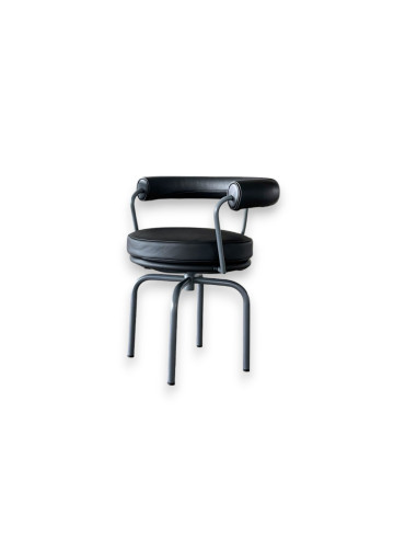 La chaise LC7 en offre expo dans notre showroom est la version dotée d'un revêtement en cuir anthracite et d'une structure en métal peint en gris.
