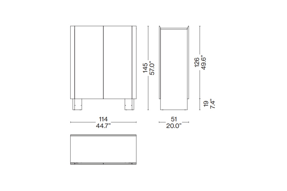 La collection Hayama de Patricia Urquiola se compose de compléments de mobilier aux formes linéaires avec une claire inspiration à la culture japonaise. En particulier, les lignes géométriques et dynamiques qui caractérisent ces contenants de design rappellent les formes de l'haori, une veste traditionnelle japonaise généralement portée par-dessus le kimono. La nouvelle famille Hayama se compose d'un meuble bar, d'une commode et d'une console. Le conteneur Hayama présente une structure avec des pieds obliques qui contrastent avec l'horizontalité linéaire de la partie supérieure. Particulièrement suggestif est l'effet visuel généré par le miroir qui, à l'intérieur du meuble bar Hayama, encadre sur trois côtés une étagère en verre extra-clair.