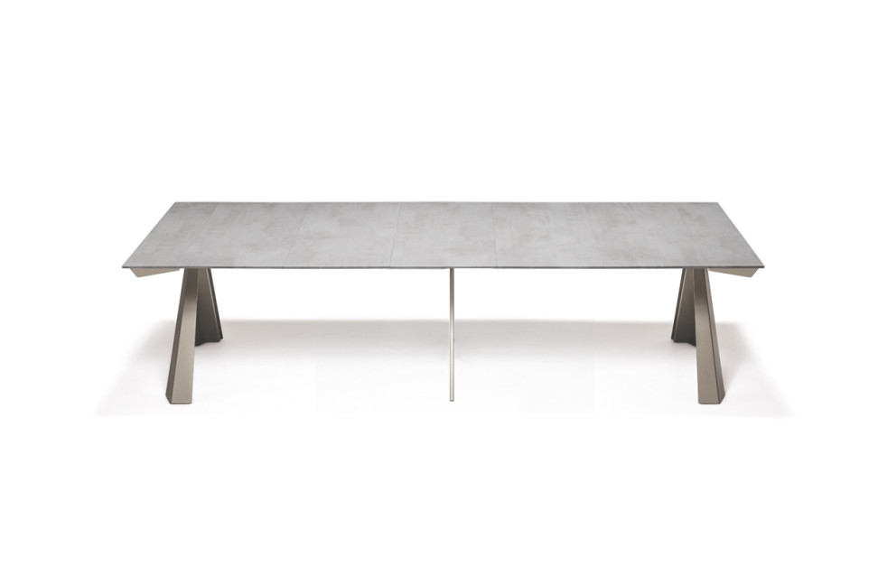 Cattelan italia réalise la console Convivium avec un plateau et des rallonges en stratifié blanc climb, oxyde gris ou noyer.