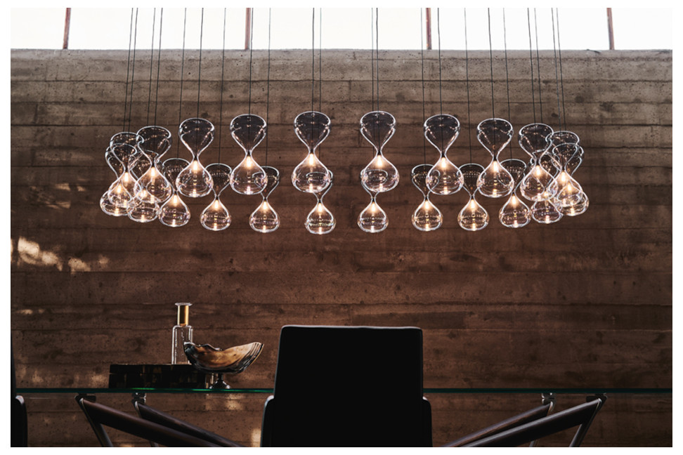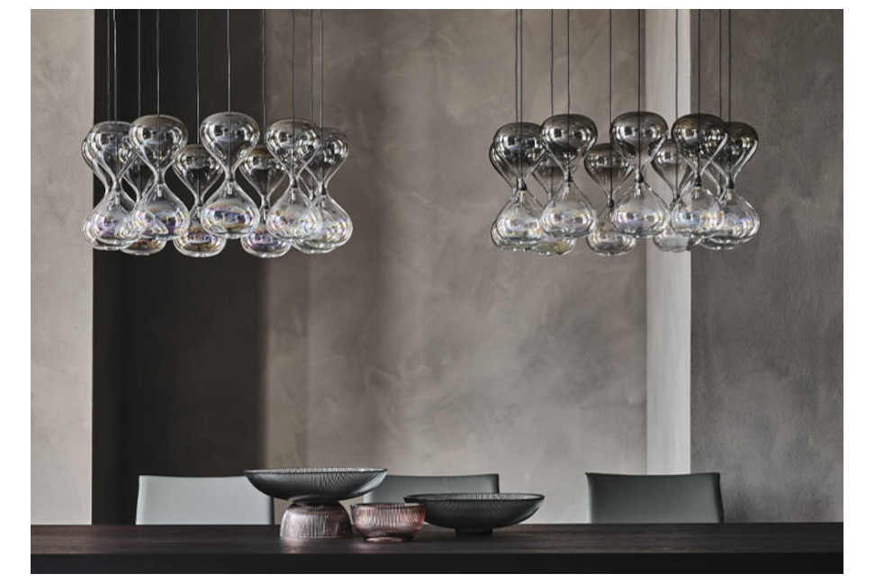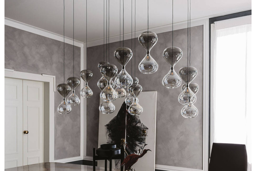 La collection élégante de lampes Sablier naît de l'esprit créatif d'Oriano Favaretto, artiste italien spécialisé dans la réalisation de lampes de design. Sablier se distingue par son design classique mais toujours actuel, c'est l'élément de décoration parfait pour éclairer avec une touche de style un environnement raffiné et moderne. La collection inclut une version suspendue, simple ou avec douze ou vingt-quatre éléments, ou de table, avec un abat-jour réalisé en cristal transparent ou en mélange irisé-fumé.