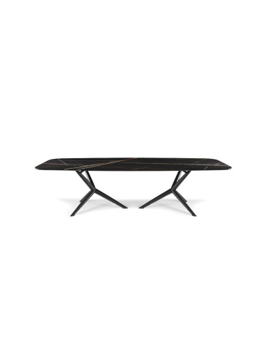 Disponible en deux tailles cm.240x120 ou cm.300x120, la table Atlantis Keramik, née de l'idée de Paolo Cattelan pour son entreprise Cattelan Italia, a une base en titane texturé, bronze, graphite ou noir tandis que pour le plateau, on peut opter pour Alabastro, Supreme, Ardesia, Golden Calacatta mat, Golden Calacatta brillant, Portoro mat, Portoro brillant, Sahara Noir brillant, Emperador, Makalu, Breccia ou Arenal.