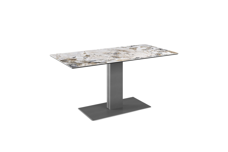 La table Elvis, conçue par le designer Alberto Danese et réalisée par Cattelan Italia, grâce à son look et à des matériaux intemporels comme le cristal, la céramique et l'acier, est un complément de mobilier idéal pour de nombreux environnements modernes.