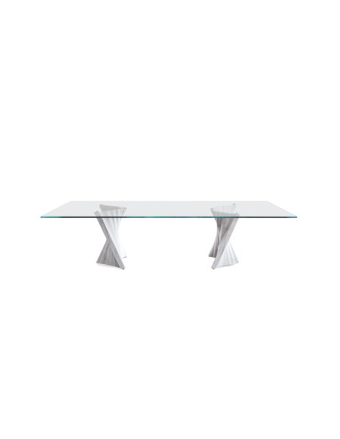 Plisset di Cattelan Italia, qui porte la signature du designer Raffaello Galiotto, est une élégante table réalisée avec une base en marbre Palissandro et un plateau en cristal transparent ou transparent extra clair. La table est disponible en différentes formes et tailles. Plisset se distingue par la forme particulière de sa base qui se caractérise par des lignes ondulées et douces. Grâce à cela, la table parvient facilement à attirer l'attention sur elle-même et à s'affirmer comme un élément de décoration raffiné.