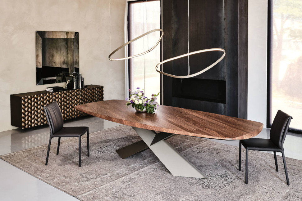 La table Tyron Wood, conçue par Paolo Cattelan pour l'entreprise éponyme, est un hommage particulier au matériau du bois. Des essences précieuses recouvrent en effet le plateau Masterwood, un travail unique sur le marché qui rend à son tour cette table unique. Disponible en différentes tailles et également dans des versions extensibles, la table Tyron Wood répond aux besoins les plus divers.