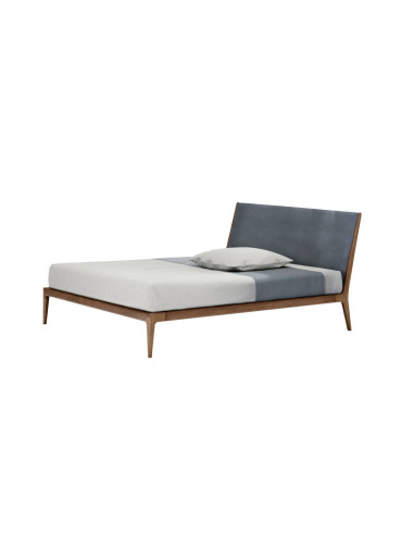 La structure en bois massif de noyer américain est laissée exposée, offrant au lit Brad un style immédiatement reconnaissable. La tête de lit rembourrée, recouvrable en tissu ou en cuir, est disponible en version lisse ou matelassée. Le lit Brad est disponible en plusieurs tailles.