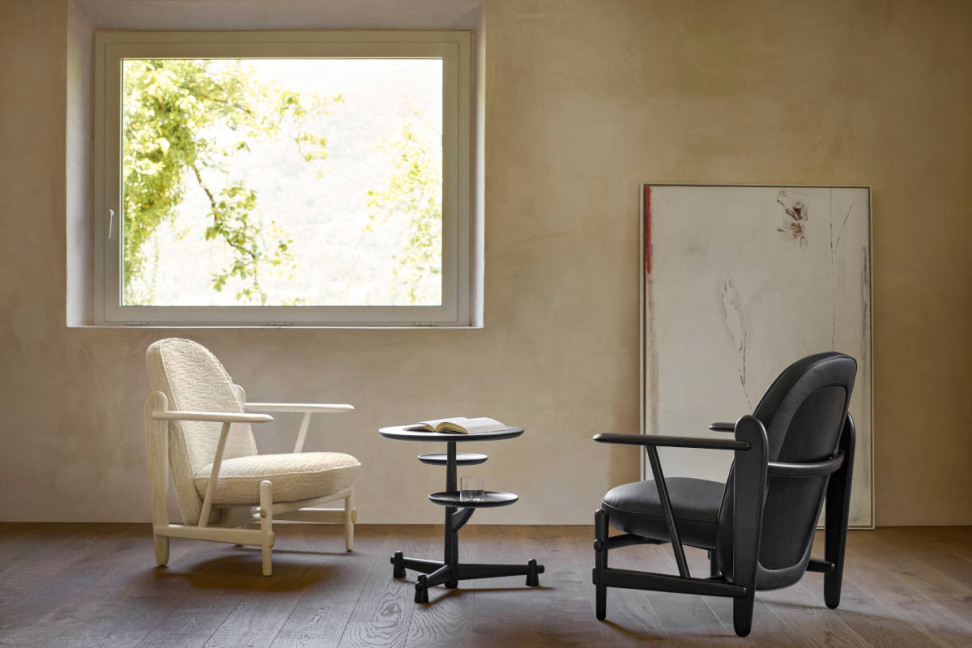 Adapté tant à la zone de vie qu'aux environnements contract, le table basse Árbol peut être associé à diverses fauteuils. Le design rappelle la figure d'un arbre, avec une structure centrale sur laquelle s'imbriquent trois branches et les plans de support correspondants. Le table basse Árbol est disponible en noyer américain ou en frêne, dans de multiples variantes de couleur.