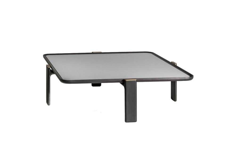 Une version plus élégante et moderne du table basse Duo est représentée par le table basse à base de piédestal. La structure est en bois massif de frêne dans diverses finitions, la base a une forme de cône inversé, tandis que le plateau est formé d'un cadre en bois massif de frêne teinté wengé dans lequel est inséré le plateau en marbre ou en verre laqué.